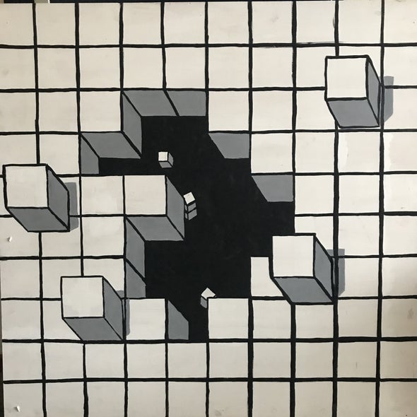 3. Daarna tape je de vlakken die zwart worden af en  zet je deze met zwart op